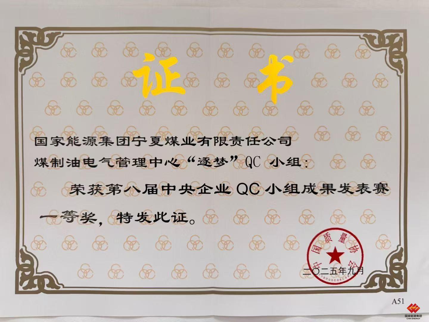 本届赛事由国务院国资委指导、中国质量协会主办,作为国内QC领域的最高水平赛事,经各中央企业集团筛选推荐,中国质量协会材料初审后,汇聚了来自90家中央企业的214个QC小组,近600名选手同台竞技。经过激烈角逐,最终评选出一等奖42个、二等奖122个、三等奖50个。宁夏煤业煤制油公司“逐梦”QC小组历经公司、集团、国资委的层层严格选拔,最终脱颖而出,代表国家能源集团站上中央企业QC成果的最高舞台,创该领域历史最好成绩。
